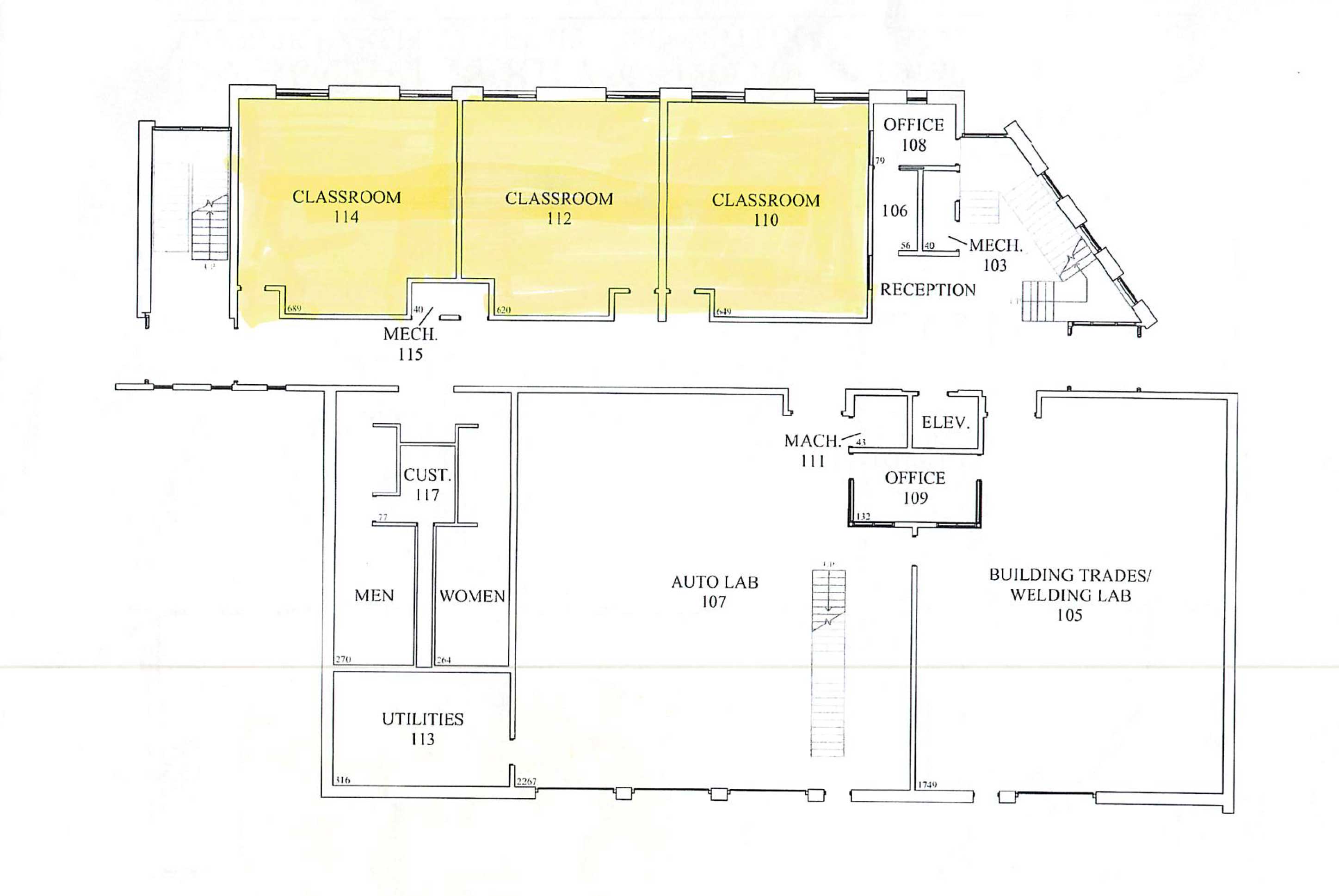 Highlighted areas below are available to rent through DMACC Perry Center.